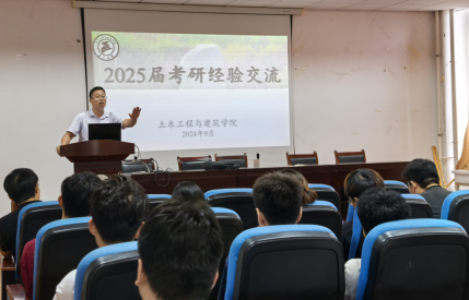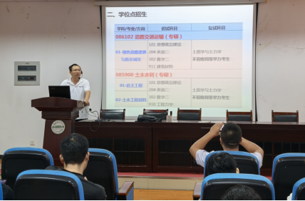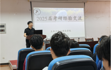 经验交流会开始后,王元元教授介绍了土建学院现有的道路交通运输及土木水利两个硕士点,对专业特点、招生要求、初复试科目、生源计划及调剂原则进行了详细讲解;周兴涛副教授就学院现有的导师团队、科研平台、项目经费和试验设备为同学们进行了讲授,并呼吁大家第一志愿踊跃报考本校硕士点;薛金顺副教授辅导同学们规划了余下三个月的复习安排,着重强调了备考心态特别是上考场后应合理规避的“雷区”,鼓励大家坚定信心、直视挑战、披荆斩棘、成功“上岸”;周飞副教授为同学们罗列了学院教师现有的院校资源,择优选取对考研复试更为有利的高校,并耐心解答了在场考生提出的相关疑惑;刘雨荷老师叮嘱大家留意考研相关讯息,既要低头努力驾车,亦需抬头谦虚问路,切勿因为过度“闭关”复习错过了报名缴费的重要时间截点。