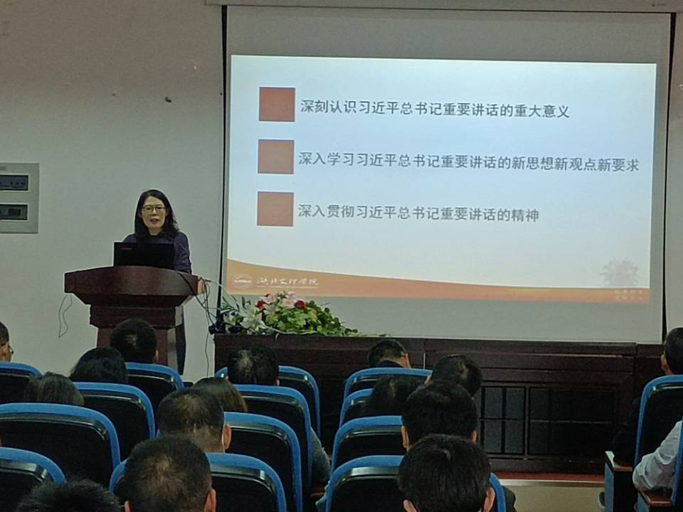 (通讯员 郭晓明)10月14日下午,土建学院邀请公司党史学习教育宣讲团成员、马克思主义学院副教授熊明秀来学院做习近平总书记“七一”重要讲话精神辅导报告。土建学院全体教职工和部分员工党员代表共100余人参加宣讲会,宣讲会由土建公司党委书记马永刚主持。