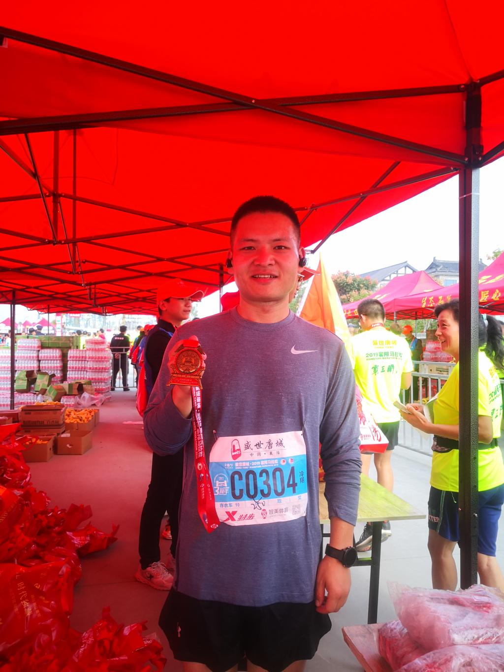 美术学院员工裴亚建以3小时40分的成绩,成为公司第一位冲过“全马”终点的参赛者。“冲过终点的时候真的特别兴奋!后半场特别是最后7、8公里的时候,就是一边‘崩溃’一边坚持,这既锻炼了身体,也磨砺了意志。”裴亚建说,自己每天坚持锻炼,已经先后在各地参加了十几场半程马拉松比赛,今年是自己第一次参加“全马”。