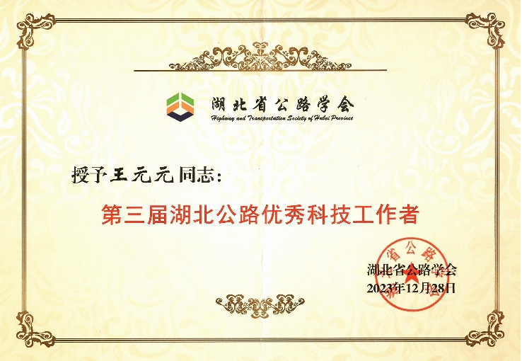 学术活跃度方面,曾主持世界交通运输大会分论坛,在WTC、TIM、道路与机场工程青年论坛等会议作学术报告多次;兼职世界交通运输大会公路学部技术委员会主席、湖北省公路学会理事、襄阳市公路学会常务理事等职务,担任《Automation in Construction》等多家SCI杂志的审稿人。