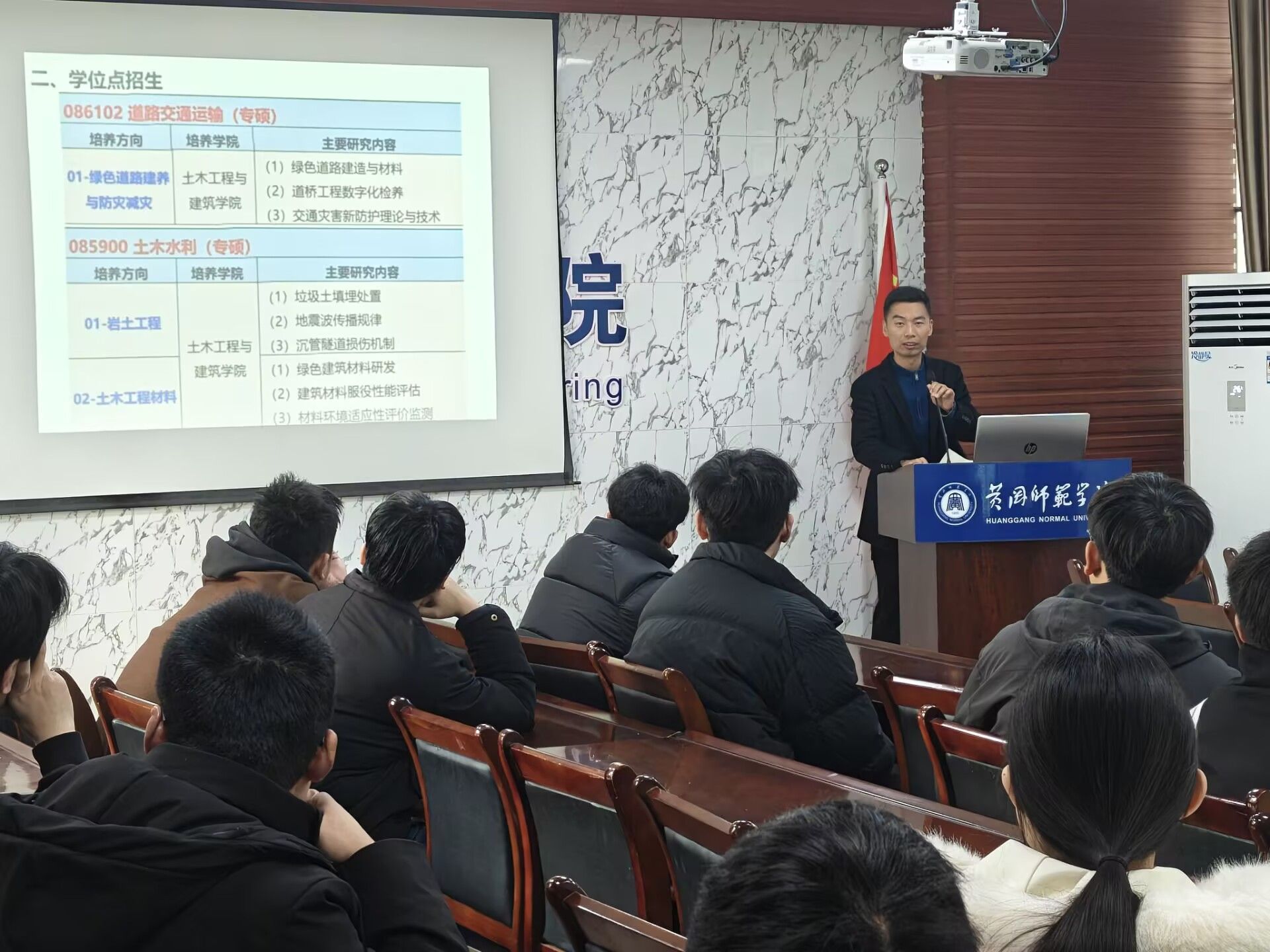 (通讯员 刘雨荷)2月26日,伟德国际1946源于英国经理李业学率队赴黄冈师范学院开展2025年研究生招生宣传。土木工程系主任范建辉、教学委员会副主任尹晓萌博士、研究生工作办公室主任周衡共同参与。