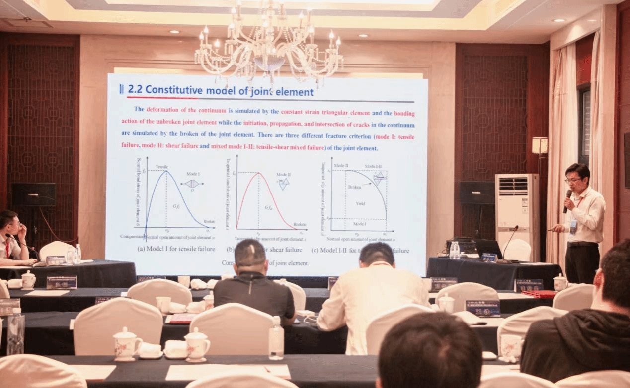 在学术交流环节,曾刚教授和王元元教授分别担任“水库链生地质灾害致灾机制及应急防控对策”“水库岸坡岩土体劣化致灾与防控”分论坛主持人。李圣伟博士在“水库地质灾害绿色防治技术及应用”分论坛作了题为“冲击载荷下煤岩力学特性与损伤本构模型研究”的学术报告,王铁博士在“水库岸坡岩土体劣化致灾与防控”分论坛作了题为“考虑水软化效应研究水对泥岩膨胀变形和力学行为的影响”的学术报告,交流分享了在各自研究领域的最新成果。