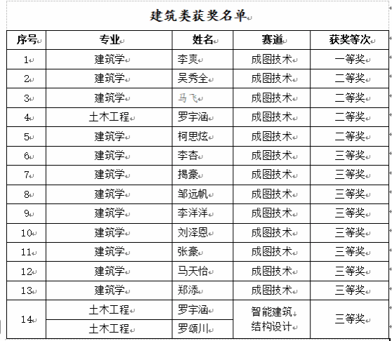 土建学院一直高度重视员工的技能培养和提升,通过校赛、省赛、国赛等各级赛事,营造比技能、赛技能的良好氛围,推动教学改革创新,提升人才培养质量。本次优异成绩的取得,离不开学院的大力支持,是学子们刻苦训练、认真钻研的成果结晶,充分展现了土建学子的团队协作及创新精神,也将激励更多学子在未来的学科竞赛中再创佳绩!让我们共同期待各位参赛队员在七月国赛中的精彩表现!