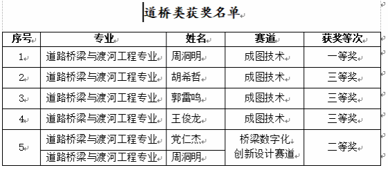 近日,我院学子在“湖北省第五届老员工先进成图技术与产品信息建模创新大赛”暨“第十八届全国老员工先进成图技术与产品信息建模创新大赛省级预选赛”中喜获19项奖项。本次参赛队员通过与全省70余所高校的参赛团队同台竞技,最终建筑类成图技术赛道获得一等奖1项﹑二等奖4项﹑三等奖8项,开放赛道获得三等奖1项;道桥类成图技术赛道获得一等奖1项﹑三等奖3项,开放赛道获得二等奖1项。