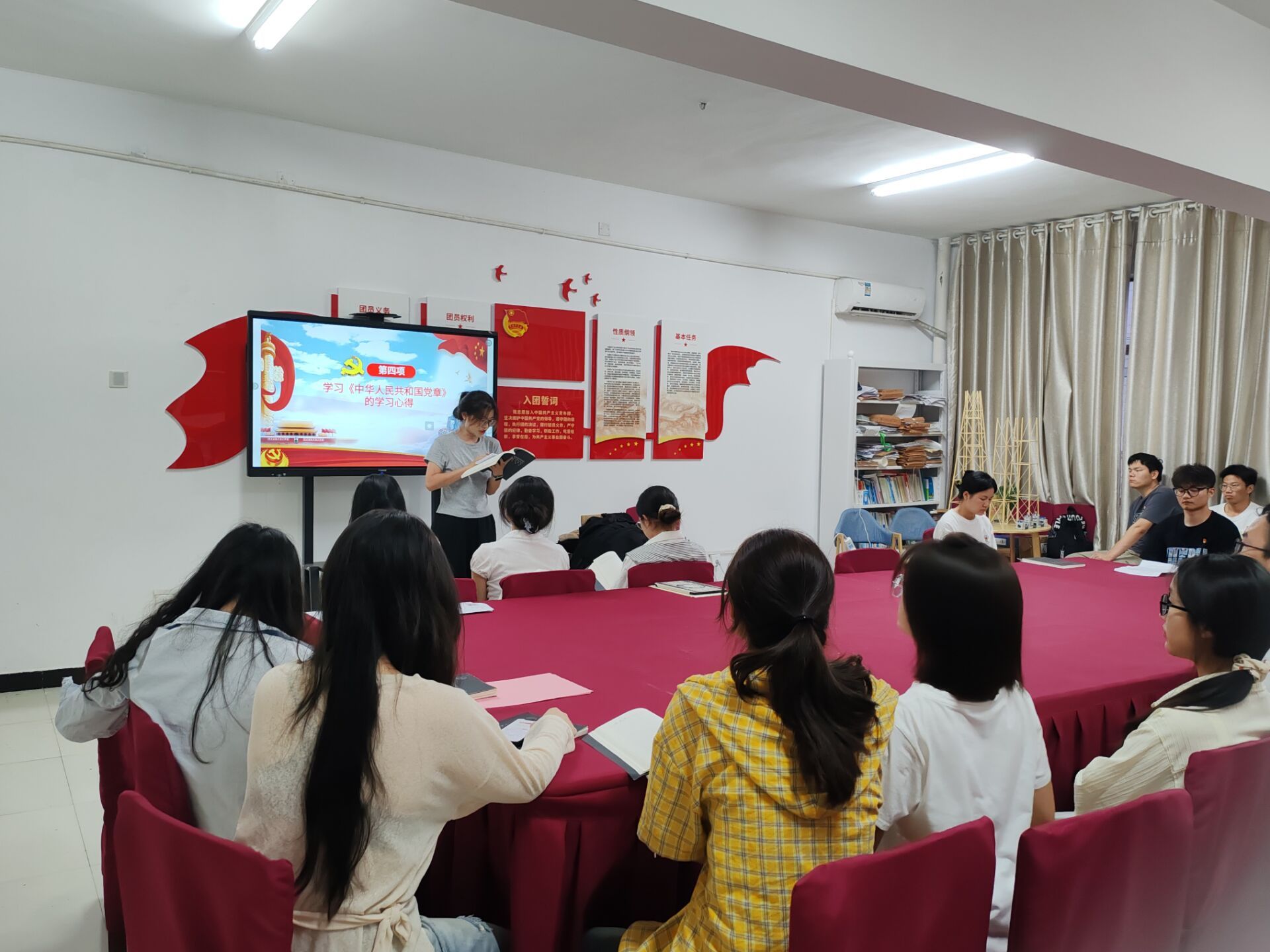 本次活动围绕八项内容展开。第一项:全体起立,奏唱国歌《义勇军进行曲》;第二项:全体员工重温入党誓词;第三项:由危劲怡同志带领大家学习诵读《中国共产党章程》;第四项:由建筑与城市更新系员工党支部卢芙蓉分享学习心得;第五项:由道路交通工程系员工党支部黎璐璐为大家讲解以“一体推进学查改,担当实干助发展”为主题的党课,主要内容为:一体推进的重要性,担当实干的精神,学查改的核心内容和未来展望;第六项:夏小强,陈金钰和后欣茹三位同志进行交流发言;第七项:各支部小组围绕党日活动主题相互讨论,分享学习心得;第八项:组织各位党员将本月党费交给支部助理。