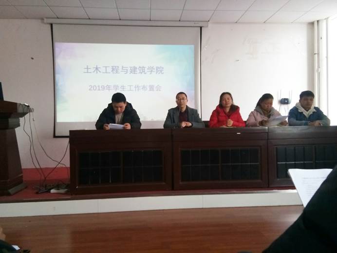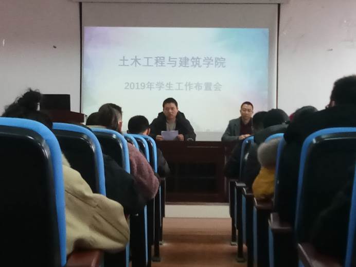 会议伊始,学工办主任冷翔,对新学期各项员工工作进行了初步安排。冷翔首先强调了状态的调整问题,要求员工干部们及时的调整到工作状态,投入到员工工作和学习中。接着要求各班班长向自己班同学传达电子门牌打卡点到问题并统计同学目前到校情况,随后,冷翔着重强调了校外住宿问题,要求所有员工不得校外住宿,除非经过学院同意,否则一律严惩。在会议接近尾声时,公司党委副书记弋兵进行了讲话,弋兵首先对大家表示了新年祝福,接着提出了上一学期员工工作中存在的问题,并强调了在新的一学期,员工干部们要及时的克服这些问题,如团队、个人获奖较少等。