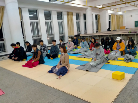 正念冥想是冥想途径之一,它把头脑平和和镇定的状态作为主要目标,使同学们学会在明晰的状态中放松,同时保持意识的完全清醒。此外,它还有助于放松,因为在正念冥想的时候呼吸比平时更深入,也有助于培养出平静的状态。在活动期间孙晓浩老师给参加活动的同学们讲述了自己的经历,并带领着同学们开始冥想,提高同学们的专注力和学习能力。在活动期间,很多同学说出了自己的收获,比如:改善了睡眠、缓解了自身的压力和焦虑的心态、提升了自控力和专注力等等,这些收获给同学们带来了生活上的帮助,也是正是我们承办正念冥想活动的初衷。