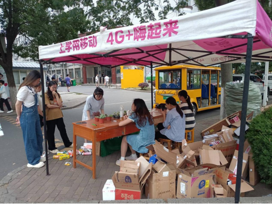 此次活动以“绿色储蓄、等价兑换、爱心环保”为主题,主要分为垃圾分类回收、绿色积分兑换、垃圾分类知识宣讲共三个部分。活动现场人来人往,气氛热烈,不断有同学来参加等价兑换,拿出在宿舍里积攒的废弃书籍、快递盒子、塑料瓶拿到现场,获取相应“绿植币”,再用“绿植币”兑换小盆栽和植物标本。