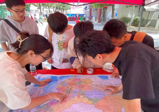 活动结束后,商芊芊同学说:“通过这次活动,来自五湖四海的同学在地图上画出的这短短的一笔,不仅画出了湖文学子的思乡之情,而且画出了他们远在他乡要学有所成的决心!”