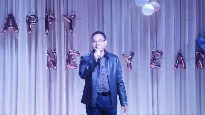 马永刚在晚会开场后,向大家祝贺元旦快乐,他说到在今天这个好日子里,土建学院的同学定能展现土建学院员工的青春魅力,期待同学们的精彩表现,并且勉励大家,要坚持心中默喊着“土建威武,土建加油”的口号,向着前方奋斗,向着更好的明天迈进,在最美好的青春中不要辜负自己,要尽情的展现自己。