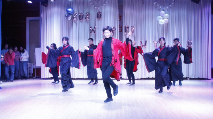 元旦晚会在土建学院团委·员工会各部门的元旦祝贺视频中拉开序幕。随之,一场劲爆的开场舞《girls’ stage》嗨翻全场,为元旦晚会带来了火热开端。元旦晚会共十四场节目,每一场都独具匠心,舞蹈﹑歌曲﹑小品﹑情景剧﹑配音等等节目类型穿插其中,给予观众一场视觉盛宴。