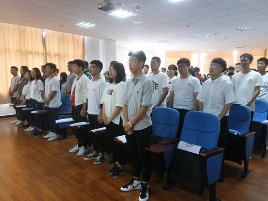 (老师同学们齐唱团歌)