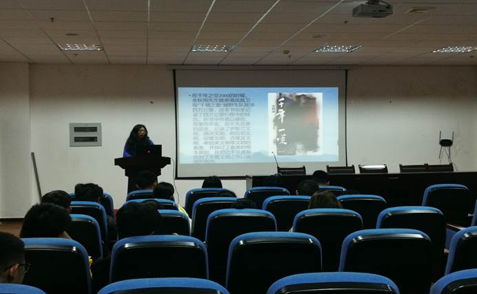 一场书籍的盛宴在主持人的致辞中拉开帷幕。通过初赛的分享,决赛共有五名同学分享自己的读书体验。书中自有颜如玉,书中自有黄金屋。同一本书在一万个人眼里就会有一万个角度和一万种感受,五位同学选择了自己最热爱的书籍,借助PPT向大家分享感触最深的部分。通过余华的《活着》感悟人生,通过《解忧杂货店》带领听众走进书中的情节推理等等,每一句都牵动着听众的情感,每一张图片都将现场的气氛渲染。也许有的体会在心中无法完全表达,但通过这次分享的锻炼和评委的点评相信他们可以向更多人传达书籍的魅力。