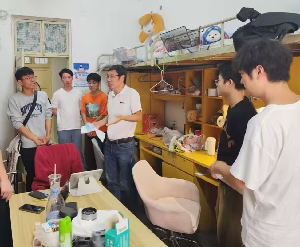 活动中,李业学和王元元走进员工寝室,与同学们亲切交谈,深入了解大家的备考情况,鼓励同学们坚定信心,勇攀学术高峰。他们分享了自身求学和科研的宝贵经验,强调了研究生学习对于个人成长和职业生涯的重要性,激励同学们珍惜机会,全力以赴,为实现更高层次的学术追求而努力奋斗。