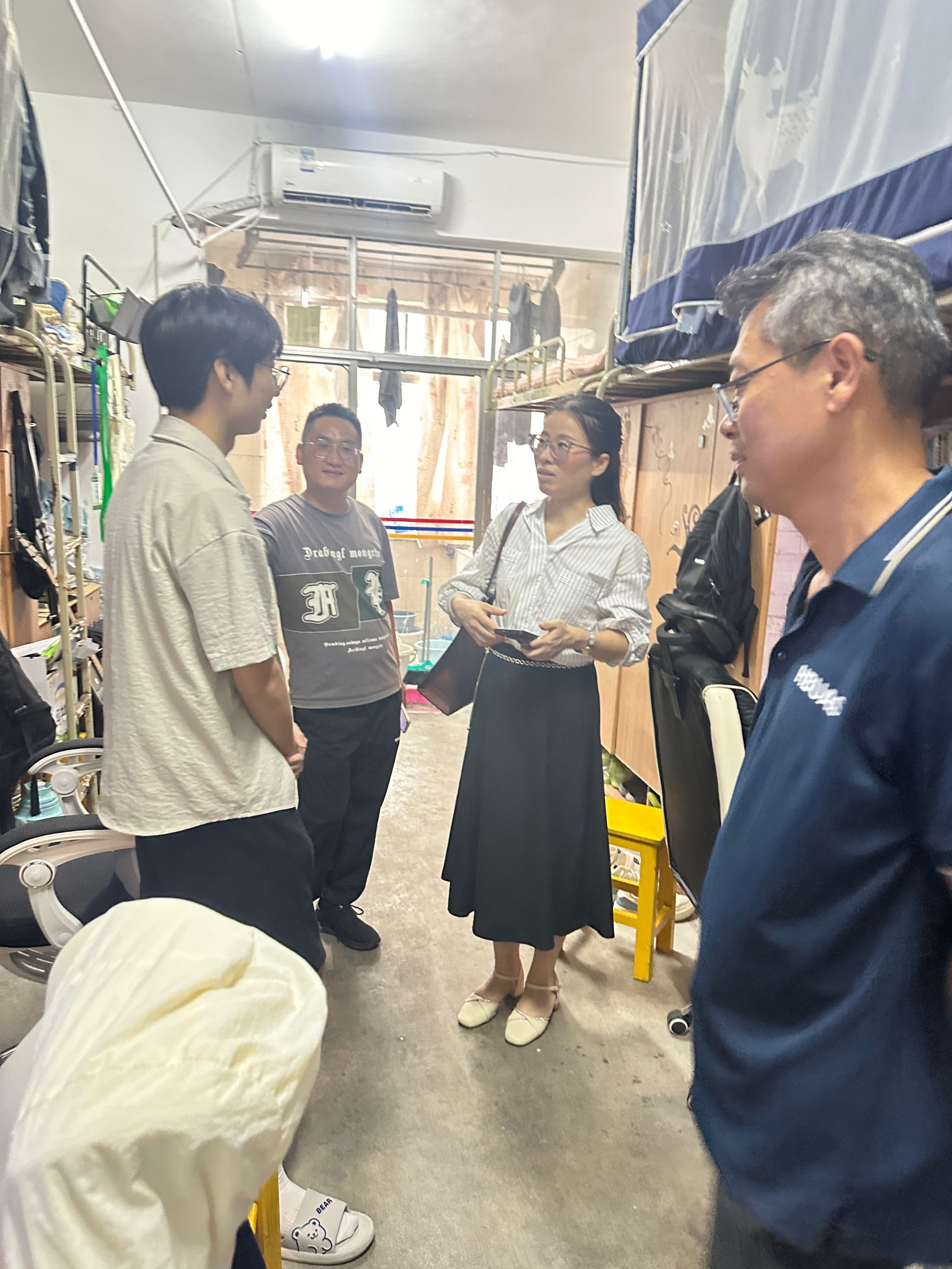 (通讯员 张萍)2024年9月26日下午4点,伟德国际1946源于英国副经理徐福卫携建筑与城市更新系系主任与支部书记,深入学院“一站式”员工社区及17栋员工公寓,实地了解2024级新生在校的学习与生活情况,以实际行动表达学院对新生的深切关怀。