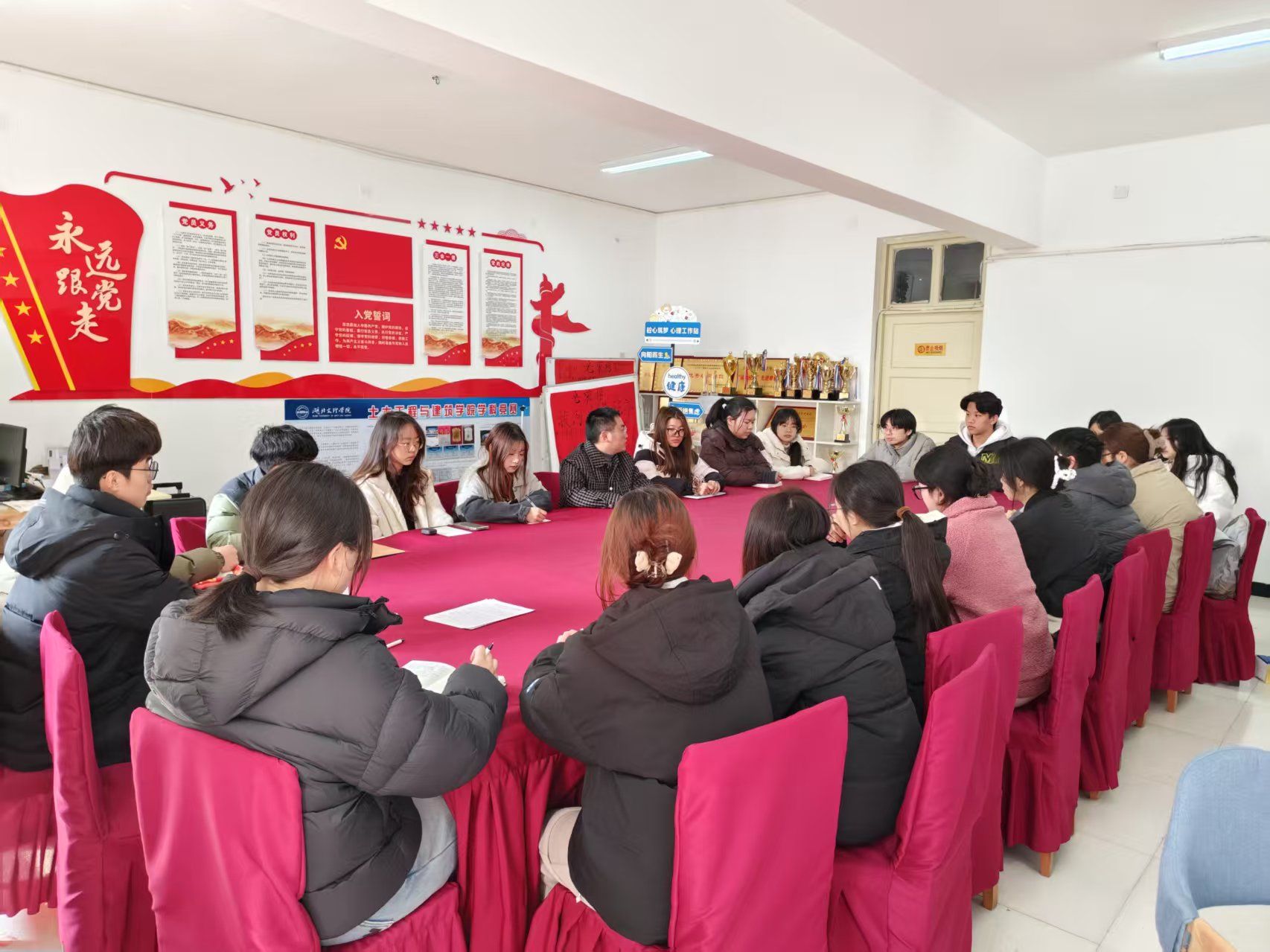 2月18日中午,土建学院辅导员潘将军组织团委员工干部在“筑梦”员工社区对公司寒假“返家乡”社会实践经验成果进行总结,同时规划部署2025年团委员工工作。