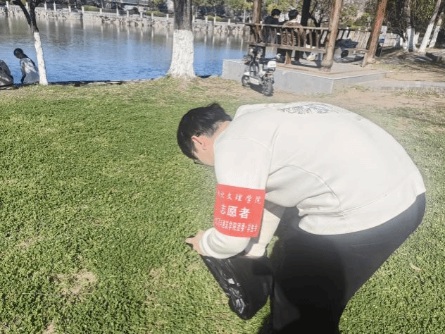 在步道区、绿化带和休息区,志愿者们认真清理垃圾并分类回收,有的同学们手持垃圾袋,从大旗山的小路上一路清理,再沿着山边的淡泊湖认真拾起路边、草丛中的垃圾,无论是烟头、纸屑,还是塑料,都一一捡起;有的则拿起扫帚,投身路面清扫工作中,认真清理路面的落叶和尘土,在同学们齐心协力的努力下,大旗山环境焕然一新。