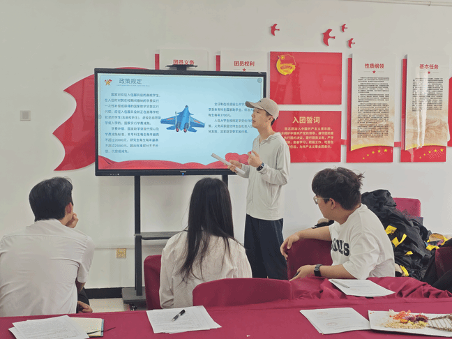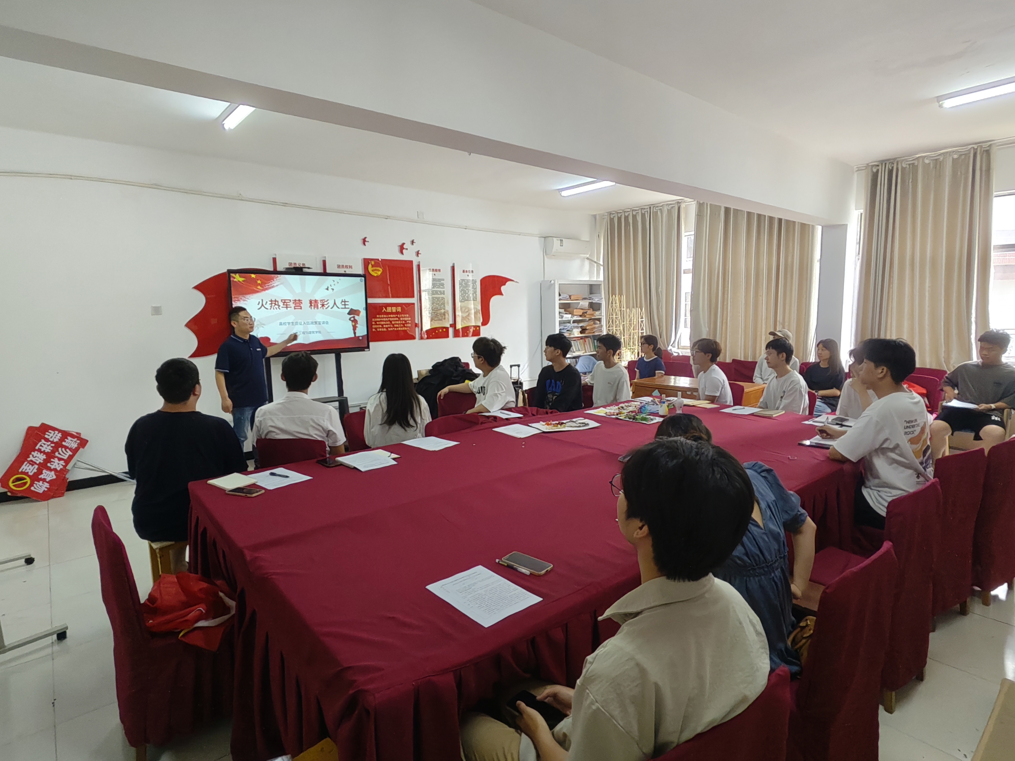 (通讯员 何之瑞)5月27日中午,土建学院于“筑梦”一站式员工社区开展以“火热军营 精彩人生”为主题国防教育主题会。辅导员潘将军担任主讲人,通过政策解读、国防知识普及、军营故事分享等形式,为员工们带来一堂生动的国防教育课。