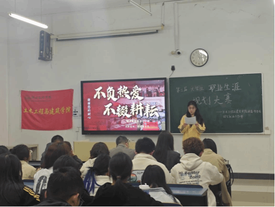 本次选拔赛设“成长赛道”“就业赛道”两大比拼单元,赛场气氛热烈而有序:选手们结合土建专业特色与个人兴趣,以从容自信的状态展开职业规划阐述——通过PPT演示,他们从自我认知、职业定位切入,再延伸至职业目标拆解、行业趋势研判、执行计划落地,甚至细致分析了职业发展中的机遇与风险,将未来职业蓝图清晰铺展在评委与观众面前。经评委组专业评审,两大赛道各决出一等奖1名、二等奖2名、三等奖3名,另评选出个人优秀奖 名。赛后,弋兵副书记作总结发言:他肯定了所有选手展现出的规划思维与青春风貌,也中肯指出部分作品在落地性、动态调整性上的不足,鼓励同学们以职业目标为锚点,在持续行动中迭代规划,书写独属于自己的职业华章。