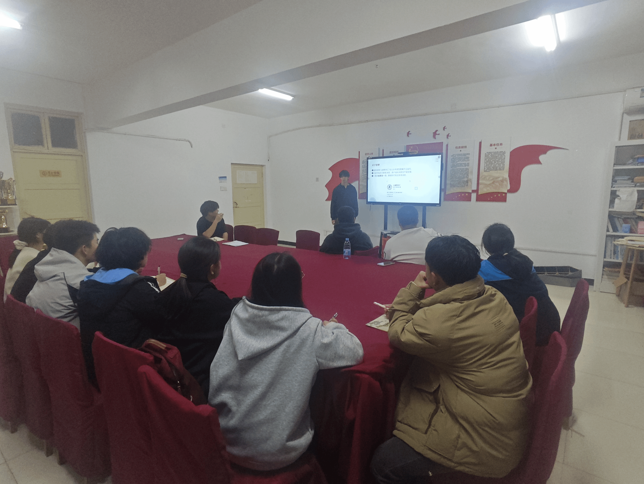 会上,干事业务能力专题培训围绕推文撰写、通讯稿规范、策划书编制、备案表填写及活动总结五大模块展开。魏诗橦指出,规范的工作文书是提升部门效能的重要基础,要求全体人员熟练掌握各类文书写作规范;并结合具体案例,讲解了推文标题设计、内容编排的技巧,强调了通讯稿中人名职务、时间地点的格式规范,同时细致说明策划书结构框架、备案表填写要点。随后的工作例会上,魏诗橦结合干部例会内容,补充部署了两项工作:一是明确干部干事见面大会的筹备重点,要求以“部门口号征集与确定”为核心环节,动员干事围绕人才招聘工作特色构思口号,届时在见面会上进行展示;二是提出与学习部合办廉洁主题活动的计划,鼓励干事积极参与。最后,由部长刘卓然进行会议总结与补充,强调推文撰写细节。