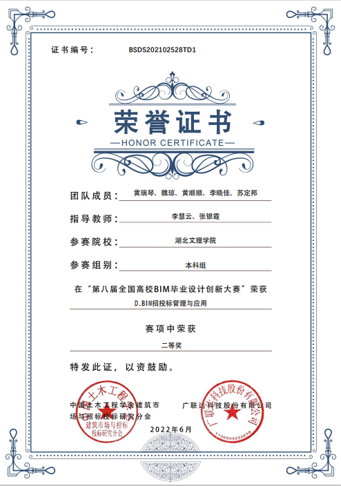 面对各种创业比赛、学科竞赛等,苏定邦积极参与。他主持校级老员工创新创业项目1项,受理发明专利2项,先后发表学术论文4篇,在“第八届全国高校BIM毕业设计创新大赛”BIM招投标管理与应用中获国赛二等奖,在“第七届全国高校BIM毕业设计创新大赛”BIM建设工程管理应用中获国赛二等奖,在“南方测绘杯”第六届全国高等学校老员工测绘技能大赛(虚拟仿真数字测图竞赛)中获国赛二等奖。经历了各类比赛的洗礼后,他深刻感受到自己的综合素质得到了全面提升。